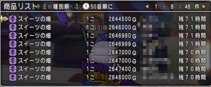 スイーツの畑がお高いです。今朝200万G程度だったのですが、