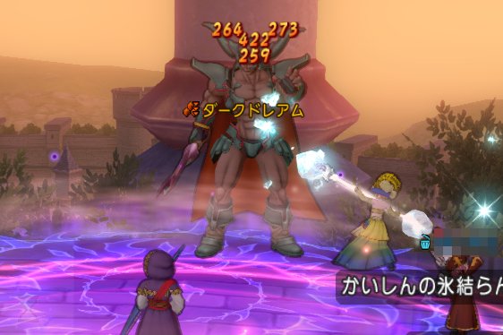 ダークドレアムに「人間1人とサポート3人仲間のパーティ」×2組で行きました。チームクエストです。
