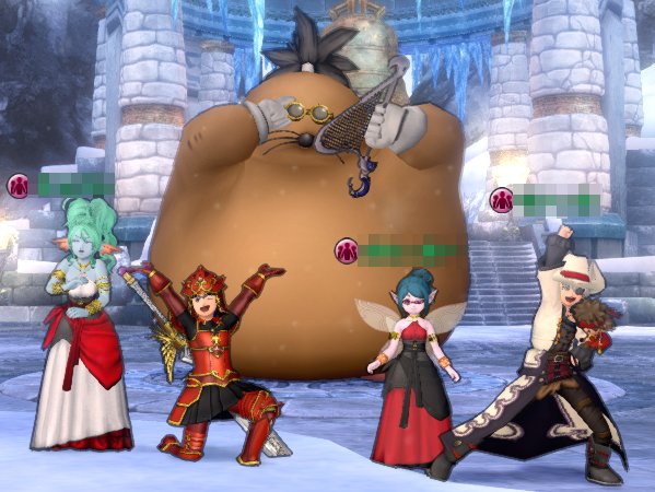ドン・モグーラと全く同じメンバー・職業。正直言ってあまり勝てると思っていなかったのですが、全滅の危機から立て直し、魔造兵を潰しながら合間に本体も攻撃している間に、本体のHPがオレンジ、赤・・・これは行ける!→6分ほどで勝利!