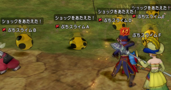レベル上げ(96→99)を開始して、笛吹き羊男を狩っていたのですが、ぶちスライムが良いという噂をきいて行ってみると、なかなか良い感じでした。ちょっとシンボルが少ないけど、1回の経験値が多いし、あまり強くないです。