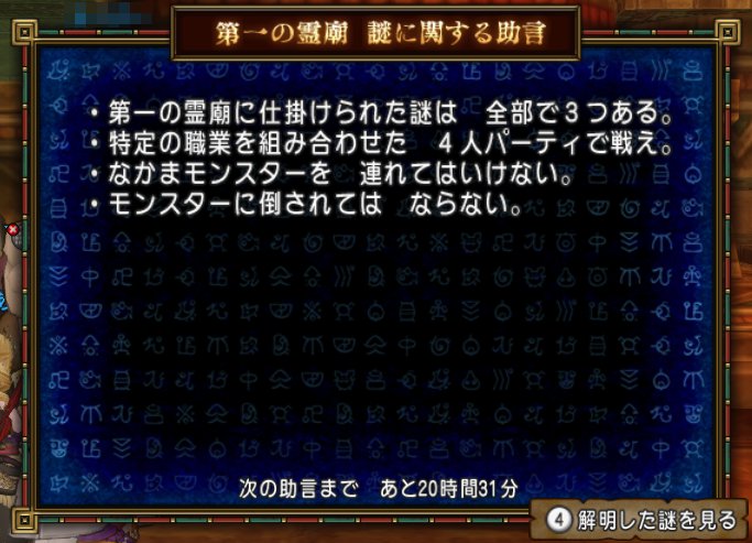 第九霊廟だけとりあえずクリアしたら、もしかしたら偶然解明する可能性もわずかにありますな。