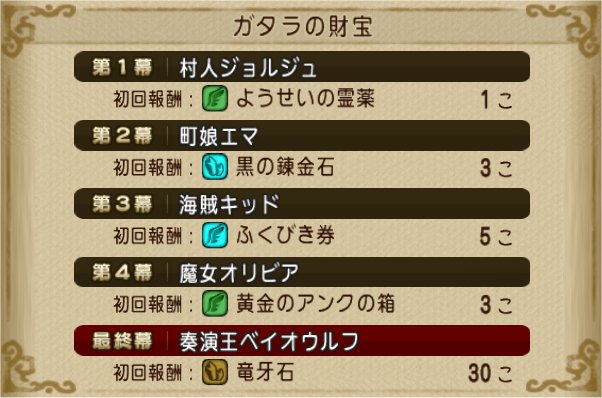 黄昏の奏戦記更新、竜牙石30個 2020.01.15 黄昏の奏戦記が更新されました。 今回の景品は、竜牙石30個、黄金のアンクの箱3個など。 竜牙石30個のバザー価格は、1月15日13時現在、75,000Gくらいです。 黄金のアンクは、僕はピラミッドを熱心にやっていなかったのでメインキャラですら、セトのアンクとイシスのアンクがリーチ(あと1ポイント)という状態、サブキャラは言わずもがななので助かります。ピラミッド行けばいいんですけどね。結構面白いし。