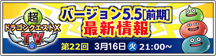 今回の超ドラゴンクエストXTVは、 バージョン5.5[前期] の最新情報をお届けします!