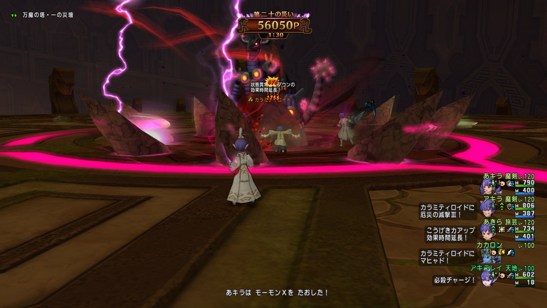 レベル100天地で万魔 2021.11.28 11月11日に作ったキャラがレベル100(天地雷鳴士)になったので、万魔の塔に行きました。 一の災壇は、余裕で完全制覇。 二の祭壇は、ギリギリの時間で完全制覇。 称号をもらいまくりました。 アクセサリーは・・・ 先は長い。 結構アクセサリを持ってるのは、バージョン6のマップなどで拾ってきたからです。