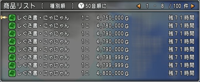 「しぐさ書・にゃにゃん」が高い 2022.02.22 ツールふくびきの新しい1等景品「しぐさ書・にゃにゃん」の市場価格 475万以上! どうせすぐ下がるよ、とりあえず2~3日待ってみましょう。 3日後「ほらね、あと3日待てばもっと下がるかもよ」 1ヵ月後「しぐさ書・にゃにゃん買ったよ!」 「え、今さら?」(もうみんな飽きてる・忘れてる) 「しぐさ書・ごきげん」のときに僕がやったことです。 しぐさの流行ってありますからね。すぐに買わないと流行遅れになる。 いつ買うかはあなた次第。自力で当てるなら今すぐに!